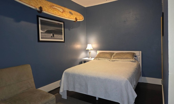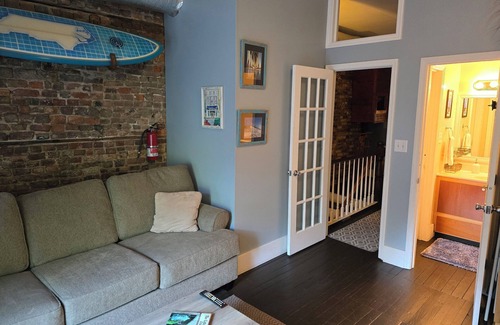 This beautifully appointed second-floor loft offers a range of amenities designed for both relaxation and celebration. The spacious layout features a cozy bedroom situated away from the city noise, ensuring you and your guests can enjoy a peaceful night's rest after the festivities. With thick brick walls providing sound insulation and a fully equipped kitchen for pre-wedding brunches, every detail has been considered. Additionally, you will find two foam surfboards available for fun-filled days exploring the coast, as well as the option to inquire about private surf lessons from the owner—perfect for some adventure during your stay!