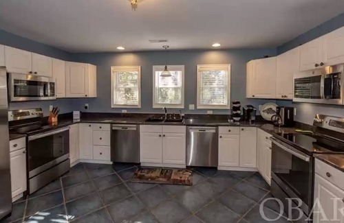 This beautiful and spacious home (over 4200 sq ft) is situated in the heart of the Town of Duck on the Beach Side of Duck Road. It’s an easy 8 min walk to the beach, the Sound, and the quaint downtown with locally owned stores, fantastic restaurants, and the Boardwalk. Enjoy exploring the town, take morning walks for coffee and donuts or treat your family to ice cream from one of the local shops. The ocean and the beach is just a short walk down our very quiet, live oak lined street. We also include use of a New Bintelli golf cart to help you get all of your gear to the beach. The outdoor living area and backyard are a true oasis, with its private salt-water and solar-heated pool (April-October) and new optional add-on electic heater available that will keep pool at 85+ degrees. Hot tub, gazebo, grill, and lawn games to play on our spacious enclosed yard, a rare amenity in this area. If you’re looking for a quiet place to relax, head out on one of the many decks with plenty of seating and porch swings. The kitchen is fully stocked and equipped with everything you might need, and has almost two of everything including range ovens, dishwashers, and microwaves. Full size laundry rooms on the first AND second floor. Large game room with a billiard table, video games (PS3), movie library, wet bar with second fridge and ice maker that provides entertainment for all. This is a vacation that your family will remember forever!