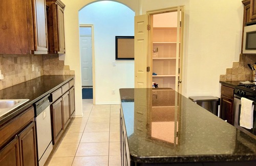 This delightful home in Edmond, Oklahoma offers 3 cozy bedrooms - equipped with 1 king, 1 twin, 1 bunk bed (double + twin), and 2 queens - and 2 full bathrooms. With a large open floor plan, this house makes the perfect place for family togetherness! Stay comfortable and enjoy a neighborhood park and a private walking trail just 3 blocks away from the home! Book now and enjoy everything this house has to offer.
