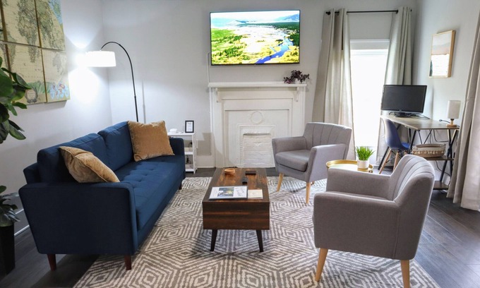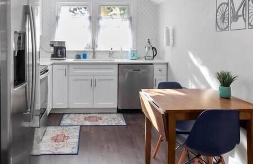 Experience a comfortable stay in this cute, historic 2 bedroom, 1 bath mill house, located in the heart of Fountain Inn. It is newly renovated with all new furniture and decor. Enjoy the convenience of downtown's shops and dining just minutes away. This very walkable neighborhood makes exploring a breeze, and the charming, well-appointed home offers a cozy retreat for all; couples, individuals, families, and four-legged friends. Welcome to a memorable Palmetto State getaway!