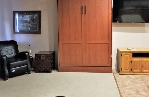 This amazing Suite is very private with all the COZY amenities that makes it a home. Summer 3 nights minimum. Get a great night sleep in the new King size luxury bed in Master Bedroom, unpack stay awhile, Wardrobe closet can accommodate cloths to hang or fold . Living room converts instantly into a second sleeping room & dresser with a comfortable queen Murphy bed already made with super soft sheets and comforter.