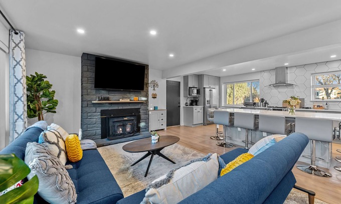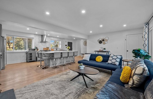 Our mid-century, 7-bedroom, 4-bathroom home in the heart of Lakewood Center is the perfect 3,120 sq ft of space no more than 15 minutes from top attractions. Enjoy air hockey, ping ping, foosball, a private hot tub, and a fenced yard.