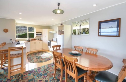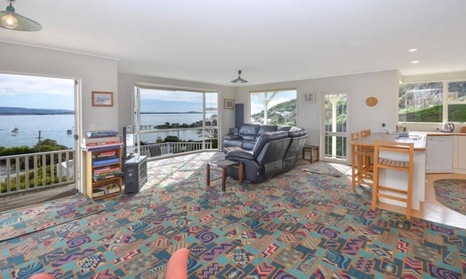 Sunny position with fantastic views across Moeraki Bay. 50 metres to the beach and boat ramp. A 2-minute walk to "Fleurs" Restaurant/cafe.