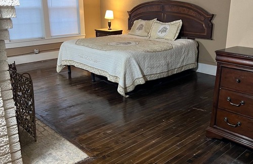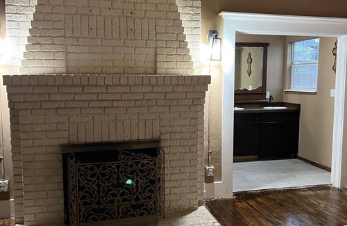 This cozy Master suite is recently remodeled and only minutes from downtown Brady. This large spacious room with king size bed and private bath features a fireplace. This is one of three rooms in the house, and shares a common kitchen, living area and pool.