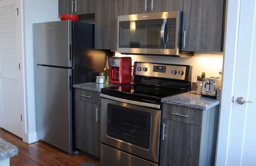 Tenants will be greeted in person, credentials verified, and then they will issued building and condo access credentials. This building is a multi level warehouse that has been converted into luxury apartments and is also the home to several first floor businesses. This is a "Quiet Building" we do ask that you keep in mind our long term guests and refrain from making any disturbances or loud noises during your visit. You will have your very own fully furnished new condominium to yourself. You can come and go as you please, however, we do ask that you respect our other long term guests and keep all noise to a minimum.