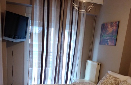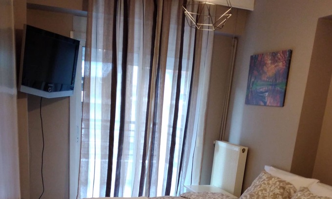 This cozy newly renovated apartment is 40 sq. feet in the center of Thessaloniki in the second floor with elevator. Has everything for 3 people to feel comfortable like home. The bedroom has a flat 32 TV and double bed. There is a sofa with sheets in the apartment for one person to sleep . Brand new kitchen with new fridge, stove ,microwave , coffee maker, toaster, washer ,iron, and balcony in front. kitchen utensils included for cooking. Bathroom has towels, soap and shampoo.