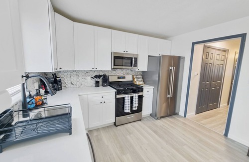 Your cozy getaway awaits in Hartford at this adorable condo. With 3 bedrooms including a king, queen, and bunk bed, there's plenty of space for everyone. Enjoy the convenience of WiFi, heating, and a washing machine during your stay. Relax in the bathtub after a day of exploring the city. The living room with a futon provides an extra space for lounging. We look forward to hosting you at our place.