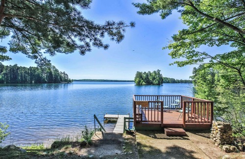 - All-seasons lakefront cabin with dock, wood fireplace, kitchen, kayaks, & AC