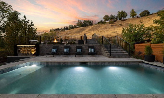 Enjoy your elevated stay with an all-season backyard sanctuary featuring a heated pool, oversized outdoor couch, and a stylish dining area. Whether you're lounging by the poolside or enjoying an alfresco meal, our outdoor oasis is designed for relaxation and making memorable moments.