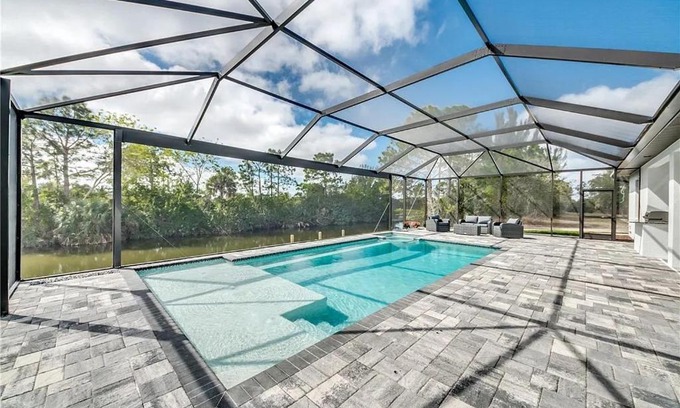 25 miles from Fishermen's Village in Cape Coral, Heated Pool, Canal Views, Sleeps 8 - Villa Sip N' Sea features accommodations with access to spa facilities. This vacation home offers air-conditioned accommodations with a patio. The vacation home has an outdoor fireplace and a hot tub. With free Wifi, this 4-bedroom vacation home provides a TV, a washing machine, and a fully equipped kitchen with a dishwasher and oven. Guests can take in the views of the pool from the terrace, which also has outdoor furniture. There's also a seating area and a fireplace. A water park can be found at the vacation home, along with a year-round outdoor pool. Sanibel and Captiva Chamber of Commerce and Visitors Center is 22 miles from Heated Pool, Canal Views, Sleeps 8 - Villa Sip N' Sea, while Sanibel Lighthouse is 24 miles away. Southwest Florida International Airport is 24 miles from the property.