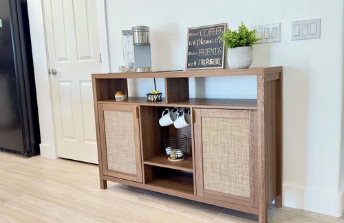 The kitchen is equipped with everything you would need to feel right at home preparing your favorite meal. Enjoy your morning coffee by the pool with the Keurig coffee and tea maker.
