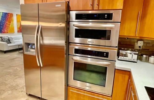 • Indoor and outdoor kitchens-stainless steel appliances.