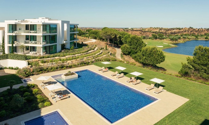 Heated pool, lush gardens, and air conditioning at Monte Rei. | Apartment in Vila Nova de Cacela
