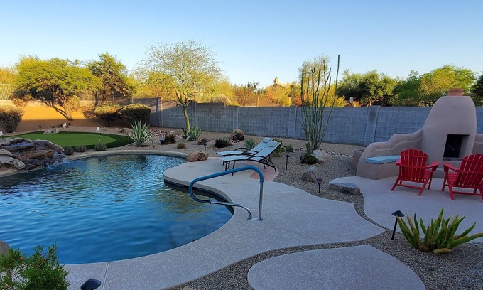 Heated Pool, Putting Green, Fireplace, Game Room | House in Cave Creek