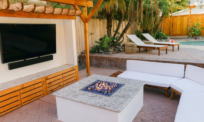 Experience San Diego like never before at The Chalcedony - Your Modern Luxury Hideaway in the Heart of It All! Just minutes from the beach, La Jolla, Seaworld, Downtown San Diego, and the hottest nightlife and dining spots, this newly remodeled haven is your gateway to the ultimate Southern California adventure. Step into your private backyard paradise, complete with a fire pit, outdoor TV, a refreshing heated pool, hot tub, and a BBQ for unforgettable group gatherings.