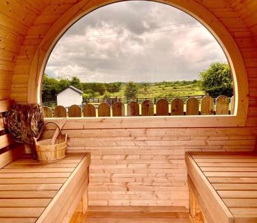 1.5 miles from Knock Shrine in Knock, Heather Cottage and Shepherds Hut features accommodations with access to a sauna. This property offers access to a patio, free private parking, and free Wifi. Outdoor seating is also available at the vacation home. Featuring a terrace and garden views, the vacation home includes 4 bedrooms, a living room, cable flat-screen TV, an equipped kitchen, and 1 bathroom with a bath and a shower. Towels and bed linen are offered in the vacation home. There's also a seating area and a fireplace. Guests can also relax in the garden. Kiltimagh Museum is 6.6 miles from Heather Cottage and Shepherds Hut, while Claremorris Golf Club is 8.3 miles from the property. Ireland West Knock Airport is 11 miles away.