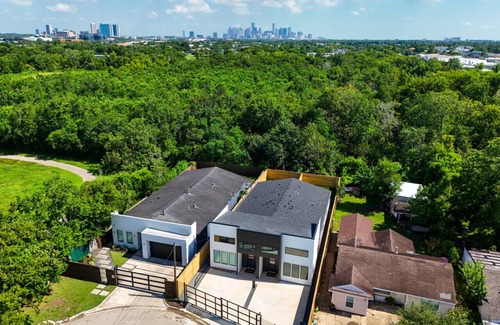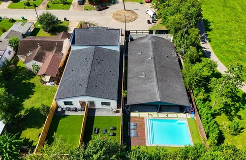 Located side-by-side in the heart of the city, this unique property offers 9 bedrooms, 6 bathrooms, a private pool, and space for up to 30 guests, all just minutes from Downtown, the Texas Medical Center, the Museum District, and NRG Stadium.