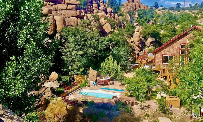 Enjoy the retreat's beautiful seasonal pond and private mini mountain peak, plus a world-class trail that winds through a meadow and forest to a year round creek, caves, tall trees and up surrounding mountain peaks. In addition, Heaven on Earth is located less than a mile from the famous Granite Dells trail system that links into more than 400 miles of trails.
