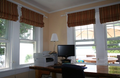 This waterfront home is on a point of land reaching out into lake Memphremagog just below the Canadian border. It is extremely private with a beach, lawn, a large dock and deck. It borders almost 1000 acres of US and Canadian preserve with walking paths. There is also a five mile long bike path that will take you to the town of Newport, perfect for biking or walking. Or you can cross the border and the path will take you about 20 miles into Canada. The paths are also great for X-country skiing and are groomed by a local ski association. There's plenty to do in every season, great restaurants, biking, tennis, watersports (you can moor your boat right to our dock), and hiking. The house is about 40 minutes from Jay Peak or Burke Mountain. You can also explore the Quebec's quaint Eastern Townships just over the border. Just 10 minutes from our house on the Canadian side is a terrific french bakery, so don't forget your passport, as you may be making frequent border crossings!
