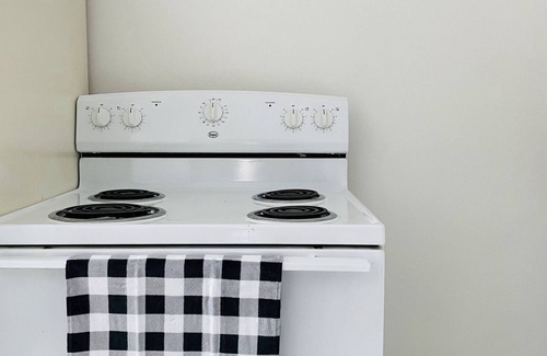 This unit is one of two in our Airbnb duplex. Designed with comfort in mind, this space is equipped with everything you might need to unwind after a long day of travel. The living room boasts comfortable furnishings with a smart TV and plenty of books to read. In the kitchen, you will find the necessities, including coffee and tea, as well as a large kitchen table that can double as a workspace. Just past the hall bathroom, you will find your bedroom with a king bed and ample storage space for your items. In the closet, you will find a twin-sized (4.5” memory foam) roll out bed that can either be placed in the bedroom or living room for an additional guest. Washer and dryer available upon request.