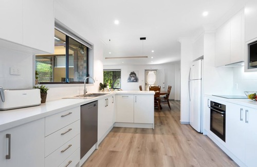 Spacious and stylish, Heights Hideaway is designed for comfort, with plenty of room for families or groups to unwind. The open plan living, dining, and kitchen area is bright and welcoming, featuring a fully equipped chef’s kitchen with modern appliances, including a microwave, dishwasher and coffee machine. Two separate living areas provide space to spread out, and whether you're catching up over a meal or relaxing with a movie on the smart TV, rest assured you’re spoilt for choice. With four well-appointed bedrooms and a laundry with a washing machine, this home is perfect for extended stays.