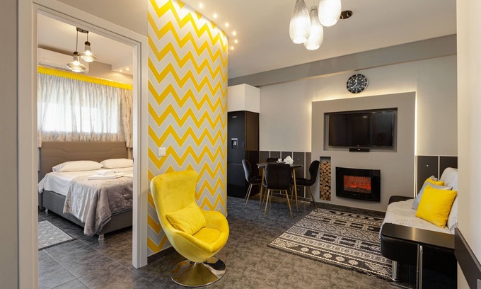 Helios central luxury suite is located in Thessaloniki City Centre. Helios central luxury suite provides accommodation, featuring Fireplace/Heating, Entertainment, Barbecue/Outdoor Cooking, among other amenities. This Apartment features Fireplace/Heating, Entertainment, Barbecue/Outdoor Cooking, to make your stay a comfortable one.