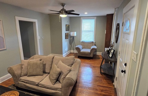Nestled in Wilmington, this delightful apartment offers a tranquil escape for guests. With 2 bedrooms featuring a queen and full bed, a cozy bathroom with a hair dryer, and essential amenities like AC and WiFi, this cool retreat is perfect for a peaceful getaway. We have private off street parking. Our two units on this property can be booked separately or together if available. There is a privete back yard for some outdoor enjoyment as well so bring your grill. Fall in love with Wilmington and enjoy the magic it has to offer.