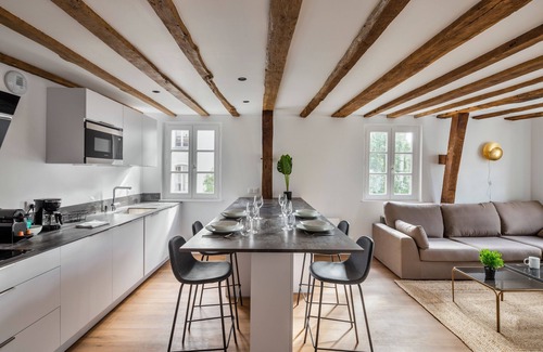 - A fully-equipped kitchen opening onto the living room, including oven, dishwasher, induction hob, coffee maker...