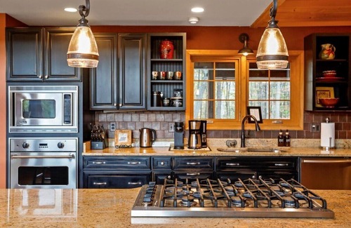 ✔ Chef’s kitchen with a large island & high-end appliances
