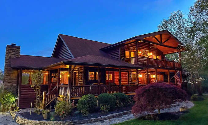 Escape to Hemlock Haven, a stunning log home nestled on four private wooded acres bordering the George Washington National Forest, just 90 minutes from the DC metro area. Overlooking the Blue Ridge Mountains and Shenandoah National Park, this serene 5-star getaway offers breathtaking views and easy access to the Shenandoah River, Luray Caverns, wineries, hiking trails, and more.