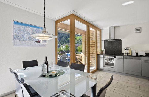 1st floor / elevator / WiFi yes / 1 room with double bed / 1 room with bunk bed and a small double bed / 1 bathroom with bathtub / 1 separate toilet The apartment is located directly behind the shopping facility "Coop" and a few minutes' walk from Migros, lift stations and the sports shop. (Holiday apartment Raber is located in the same building but is only available for rent in the winter months)