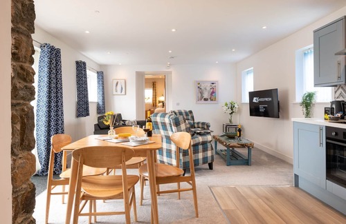 Hen Golchdy (pronounced 'Hen Golch-dee') features a lovely open-plan living, dining, and kitchen area. The space is comfortably furnished with sofas, armchairs, a dining table, and a wall-mounted flat-screen TV. The well-equipped kitchen includes everything needed to prepare meals, beach picnics, or packed lunches for hiking along the Anglesey Coastal Path. This holiday home offers a double bedroom and a twin bedroom both with en-suite shower rooms.