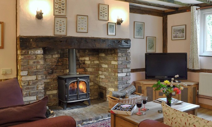Bathroom: Bath, Cubicle Shower, Toilet. Heating by wood burner and central heating, electricity, bed linen, towels, Wi-Fi and logs for wood burner included. Enclosed lawned garden with summer house. Garden furniture includes picnic table and wind up parasol. Bike store. Private parking. No smoking. Please note: No children under 2 years old.. Escape to the countryside and immerse yourself in the rural peace and tranquillity of this converted dairy, with its own private enclosed garden and welcoming inglenook fireplace. Located on the 1066 Country Walk from Rye to Pevensey, the cottage is just a stroll away from a delightful pub which serves delicious food.
