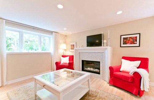 The suite offers a queen bed in each of the 2 bedrooms and a queen sofa bed in the living room as well as a gas fire place to add to the cozy ambience during the colder months. Our suite kitchen is newly renovated and stocked with plenty of dishes and cookware and we welcome our guests with fresh fruit, tea/coffee preparation supplies and milk.
