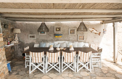 A unique and immaculate waterfront property located in the Vaporia quarter of old Ermoupolis. It has a private waterfront jetty, and terraces for outdoor lounging and dining. Views from the front of the house look straight out to the sea. The building itself has been lovingly restored and retains many period architectural details, whilst having all modern facilities and lavish furniture. The location is super-desirable; it is but a short stroll to the Town Hall, Apollo Theatre and main port.