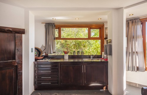 En un terreno parquizado, cubierto de flores y plantas, el departamento comparte el terreno con la casa principal de los propietarios, aun así este es independiente y dispone de la privacidad adecuada. Esta construido con un moderno estilo acompañado de una magnifica decoración. Está completamente equipado y posee todos los servicios y accesorios necesarios para una confortable estadía.
