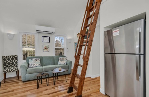 Welcome to “Ontario” one of 6 Boutique Cottages at the Herons Nest! 1 bedroom, 1 bath with sleeping loft featuring a Twin XL platform bed. Step inside to discover beautiful hickory hardwood floors and modern, tiled bathrooms, as well as your own private deck with a grill for outdoor dining. Our open concept floor plan features a full kitchen with stove, microwave, refrigerator and dishwasher. The living area boasts a Queen Size sofa sleeper. This cottage will comfortably sleep 4.