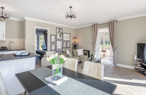 Bedroom: Kingsize (5ft) Bed, Smart TV Ensuite: Cubicle Shower, Heated Towel Rail, Toilet. Electric central heating, electricity, bed linen, towels and Wi-Fi included. Welcome pack. Private parking for 2 cars. Fishing on-site (free of charge, licence requred). No smoking. Please note: there are lakes within the grounds.. Nestled in the tranquil countryside of Denver, Norfolk, this recently renovated one-bedroom luxury lodge offers the perfect escape for those seeking peace, relaxation, and nature.