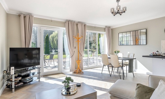 A luxurious lakeside retreat in peaceful Norfolk countryside. With course fishing included, stunning views, and stylish open-plan living, it’s perfect for relaxation. Enjoy the bright conservatory and kingsize ensuite bedroom.. All on the Ground Floor: