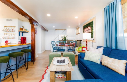 Upstairs living room has a new-style pull-out sofa bed and 65 inch TV. Please note that both TVs are ready for your app-hookup. While they do not have "cable TV" they do offer the free TV apps (like Crackle and PlutoTV).