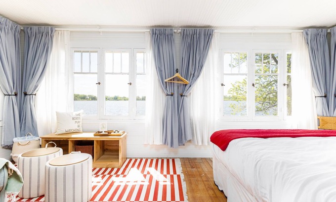 The master bedroom has 3 walls of windows to take in the lake view, a king sized bed, as well as a large comfy chair that is perfect for watching the morning swans or herons - OR - to pull out as a twin bed if you need the extra sleeping space.