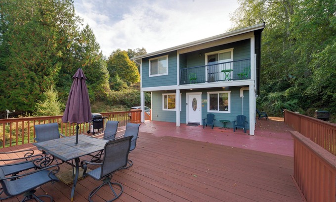 A peaceful island retreat awaits at this Lakebay vacation rental! Nestled on Herron Island, this quaint 1-bedroom, 2-bathroom cabin provides travelers with all of the amenities of home, panoramic views of the Olympic Mountains, and a convenient location to North Beach. Spend magical days kayaking through Puget Sound, sunbathing next to the sea, and fishing only minutes from the house. End each day by relaxing on the spacious deck and watching the wildlife roam in the yard.