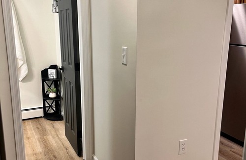 Newly renovated first-floor apartment in the rear building. Off-street parking. Large bedroom with walk-in closet, full bathroom with tub and shower, full kitchen with brand new appliances, dining room, living room, and multiple closets. Locally made solid wood Amish dresser, nightstand, and coming headboard. Washer and Dryer Onsite. Lots of space and storage for your travel needs. Weighted keyboard in the unit, stand available upon request.