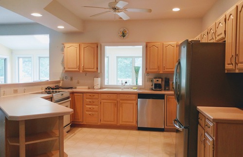 In the open kitchen, you will find everything you need to make a gourmet meal (the Giant is 5 minutes away) including china for a fancy meal or use the everyday dinnerware or the outdoor place settings. Our large dining table is surrounded by 10 chairs and there is additional seating with our dining benches.