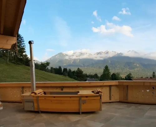 11 miles from Richard Strauss Institute in Wallgau, Herzbluad Chalet offers accommodations with access to a sauna. There's a private entrance at the apartment for the convenience of those who stay. There's a year-round outdoor pool and guests can access free Wifi and free private parking. The apartment provides guests with a terrace, mountain views, a seating area, satellite flat-screen TV, a fully equipped kitchen with a dishwasher and an oven, and a private bathroom with shower and bathrobes. A microwave, a toaster, and fridge are also offered, as well as a coffee machine and a kettle. At the apartment complex, the units include bed linen and towels. Guests at Herzbluad Chalet will be able to enjoy activities in and around Wallgau, like cycling. Garmisch-Partenkirchen City Hall is 12 miles from the accommodation, while Garmisch-Partenkirchen Station is 12 miles from the property.