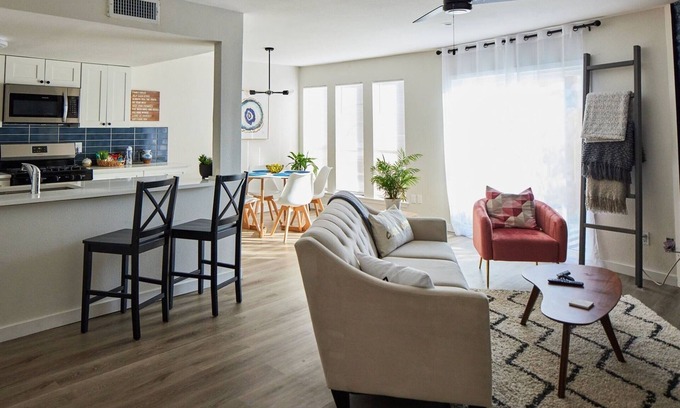 Welcome to the Pink Townhouse, your stylish home away from home in Austin!