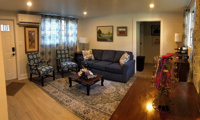 Unwind in New Orleans at this pleasant apartment. This 500 square foot space features a large bedroom with sitting area and a fantastic living room with a comfy sofa bed. Located steps from Magazine St. This is the premier dining and shopping area in New Orleans. There are 15+ restaurants and 7 coffee shops within four blocks.