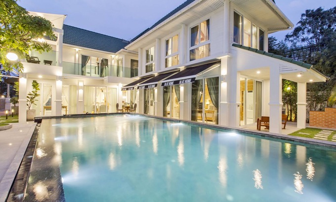 Best-rates for the Nong Prue villa starts from $942 per night with includes Pool, Security/Safety, Wellness Facilities, Kitchen, Air Conditioner, Barbecue/Outdoor Cooking, Internet, Guest Services, Entertainment, Private Pool, Ocean View, Balcony/Terrace, Sports/Activities, Bedding/Linens, Hot Tub, Parking, TV, View, Breakfast, Child Friendly, Laundry with all other amenities. Perfect for Weddings is committed to ensuring every guest experiences a comfortable and extraordinary stay, whether planning a romantic getaway, a honeymoon, a pet-friendly stay, or celebrating with the entire wedding party.