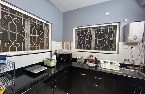 Wake up to loads of sun and views of the sunrise. Sip your cuppa in the open spaces under the coconut trees or overlooking the greens or at your private swimming pool side, in the evening enjoy your drinks with loved ones in the indoor lounge or at pool deck or stroll to best cafes around. Good quality linen and toiletries are provided to uplift the whole experience. Laze around or read a book while you relax in comfortable rooms. If you don't feel like moving out of the place cook your meals in well equipped kitchen or Zomato/Swiggy (24 hours) your favourite cuisine and enjoy the meal at home away from home.