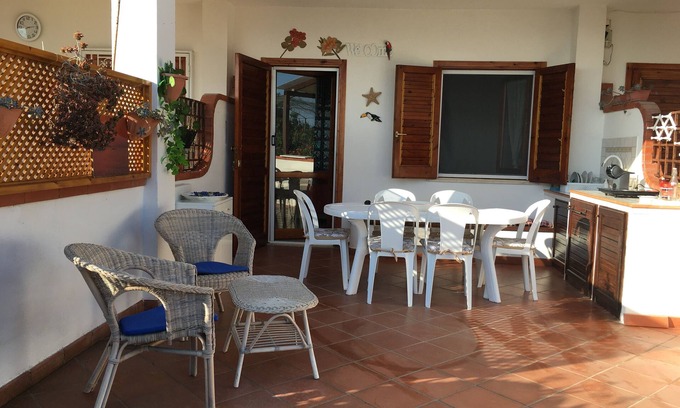 it is a very nice apartment with a beautiful view of the sea, recently renovated, it is located in a residence with 7 terraced houses. It is a two-room apartment with a spacious garden that directly overlooks the bay of Sant'Irene between Briatico and Zambrone, 150 meters from the beach with two equipped beaches.
